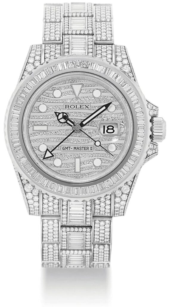 One of Ronaldo’s favorite Rolex watches, known for its dazzling, fully diamond-paved design.